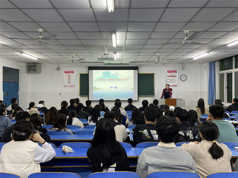 为切实加强我校大学生心理健康教育工作,培育同学们良好的心理素质,营造和谐的校园环境,太阳集团tyc234cc心理教育活动中心于11月1日在E302教室开展“大学生心理危机识别与干预”讲座。本次讲座由我院心理专员胡可鑫老师主讲,参与人员为20级、21级各班心理委员和寝室长。