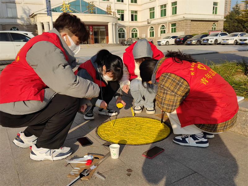 为了丰富校园文化,激发同学们的想象力和创造力,增强同学们的动手能力和参与能力,活跃校园气氛,提醒同学们注意安全,太阳集团tyc234cc、国际教育学院以及工商管理学院于12月5日在校园内联合开展了以“良辰美‘井’,你我共绘”为主题的井盖涂鸦志愿服务活动,本次活动在阳光青年志愿服务中心、党团服务中心、心理教育活动中心部门人员的组织和策划下有序开展,参加本次活动的志愿者为物流与电商学院各年级段学生。