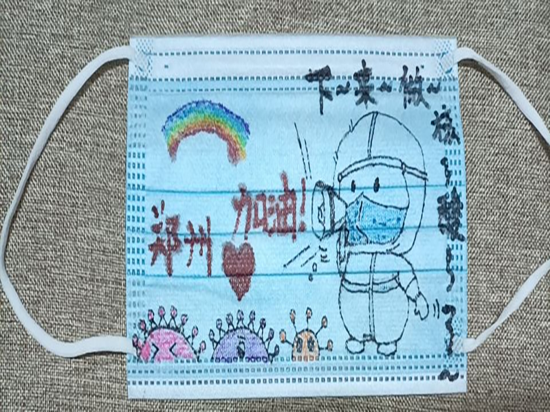 活动通知发布后,同学们参与热情高涨,积极报名。本次活动需要同学们尽情发挥想象力,用开放式的主题对口罩进行创作,纸质手绘、剪贴画、电脑绘图设计均可,也可以直接绘制在口罩上,甚至可使用其他混合材料拼搭等进行创作。在活动期间,同学们充分发挥了自己的想象力、脑力和动手能力,创作出了许多优秀的作品。同学们大多以当下疫情防控为主题,用卡通的方式展现抗疫战士们的身影,通过艺术表达自己真挚的情感——我们要做最好的自己,在抗疫的战场上,我们与“大白”们同在!
