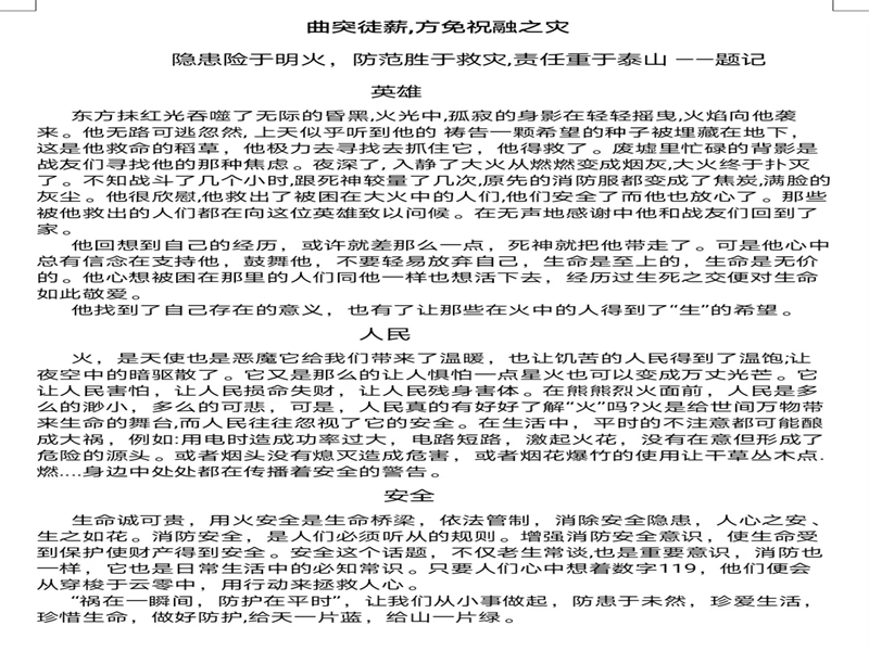 火,伴随着人类社会的发展、进步与繁荣,是人类生存生活的基本条件。然而,火是一把双刃剑,在使用的过程中,人们往往容易忽略了对它的安全防范。为了提高同学们的安全责任意识,普及消防安全知识,11月12日至11月17日,太阳集团tyc234cc文艺部特别举办了以“掌握消防常识,防范先于救灾”为主题的征文活动。