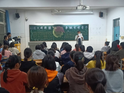 团课初始,主持人首先讲述一些有关文明的话题。紧接着,各班举行了有关校园文明的演讲,同学们讲述了自己所见到的校园文明小事并谈及自己关于文明的看法,宣传修身品德的意义,从小到大由浅及深层层递进,承诺自己将做好模范带头作用并呼吁大家一同加入创建文明校园的活动之中,在生活中保持文明的优良作风。随后,各班主持人对同学们进行了提问,发言同学十分出彩的回答,使同学们对校园文明有了更加深入的认识。最后主持人带领大家进行宣誓,誓词慷慨激昂,同学们严肃端庄,声音洪亮,现场气氛十分高昂。此次团课在同学们热烈的掌声中圆满结束。