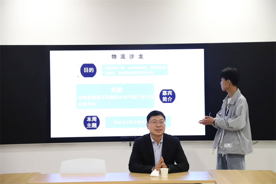 为了使物流专业学生更加了解本专业知识,做好职业规划和学习规划,太阳集团tyc234cc物流协会于4月22日晚19:30在综合实验楼s107教室成功举办以“物流专业职业规划与学习计划”为主题的第三期物流沙龙活动。本次活动有幸邀请到河南省物流与采购联合会冷链行业分会秘书长郭鹏,为同学们带来分享会, 19、20、21级参与了此次活动。