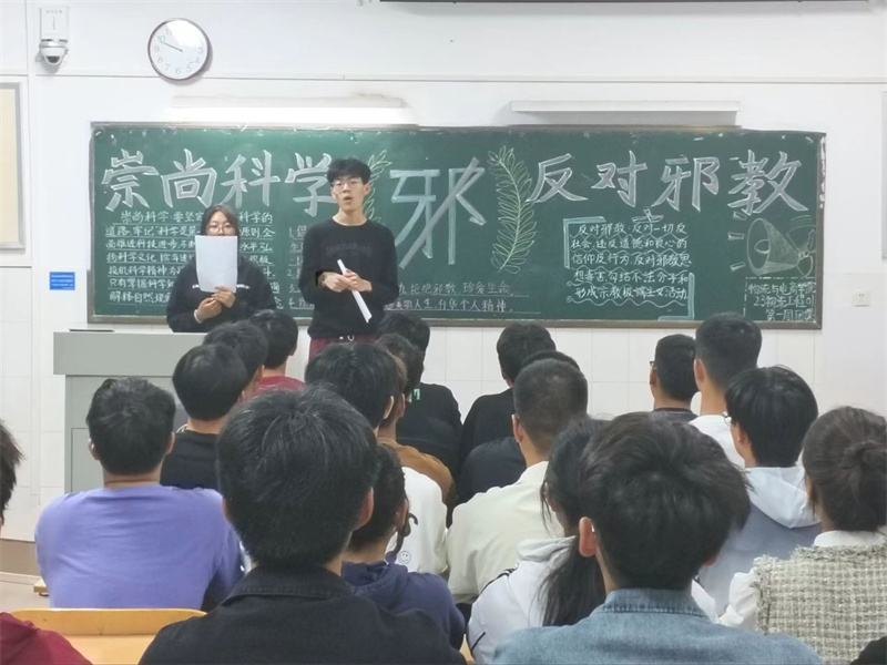 为贯彻落实校团委关于各基层团组织开展秋学期政治理论学习的安排,深入做好马克思主义宗教观、无神论和反渗透、反颠覆、反分裂、反邪教教育活动,净化校园环境,引领同学们坚定以习近平新时代中国特色社会主义思想为指导思想,树立正确的宗教观,为做好反邪教警示教育,巩固无邪教校园创建成果,呼吁同学们用科学观武装自己,让邪教无处藏身,2023年10月11日晚太阳集团tyc234cc23级各班开展“崇尚科学 反对邪教”为主题的团课活动。