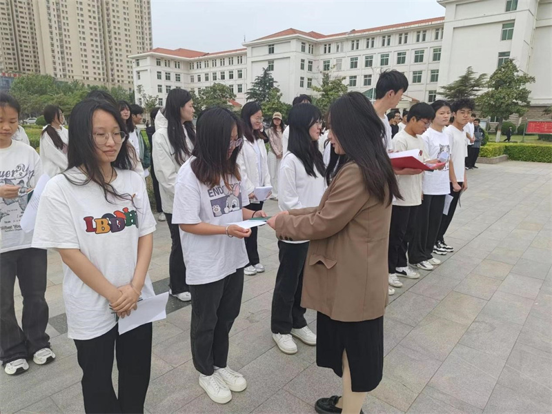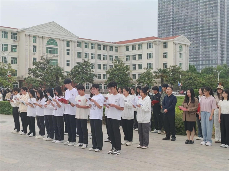 随后,尚津老师为新团员颁发了团徽徽章和团员证。这一刻,新团员们脸上洋溢着激动和自豪的笑容。新团员代表秦梦雷带领新团员庄严宣誓,他们承诺坚决拥护中国共产党的领导,遵守团的章程,积极工作,为共产主义事业而努力。在优秀团员代表秦梦雷和党员代表常赛的发言中,他们向新团员们分享了自己的成长经历和对共青团的深厚感情,对新团员们提出了希望和要求,希望大家能够积极学习,勇于担当,为实现中华民族伟大复兴的中国梦贡献自己的力量。
