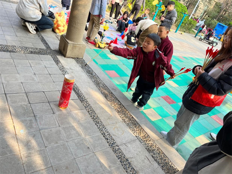 活动当天,志愿者们早早地来到社区,与孩子们亲切交流,了解他们的兴趣爱好和学习情况。随后,志愿者们根据孩子们的年龄和兴趣特点,精心设计了丰富多彩的活动内容。在手工制作环节,志愿者们引导孩子们和家长动手制作剪纸,剪出各种各样的图形,让孩子们在动手实践中感受到乐趣和成就感;在游戏互动环节,志愿者们与孩子们一起玩了套圈、投壶、三子棋等游戏,让孩子们在游戏中锻炼身体,增进友谊。活动现场,孩子们的笑声、欢呼声此起彼伏,志愿者们的耐心、细心和爱心也赢得了孩子们和家长的认可和赞赏。家长们纷纷表示,这次活动不仅让孩子们度过了一个愉快的下午,也让他们感受到了社会的关爱和温暖。