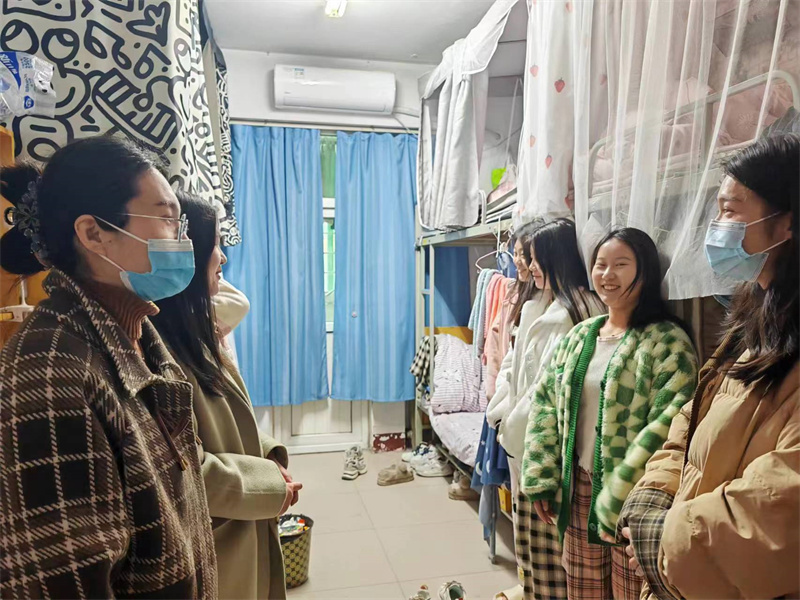在查寝过程中,老师们与学生进行了亲切地交谈,询问了学生近期生活和学习上遇到的困难并提出了自己的见解。同时还指出了学生宿舍可能存在的安全隐患,如用电、用水安全、防火、防盗等,强调安全无小事,帮助大家及时发现问题,改正错误,帮助学生们养成良好的生活习惯,打造优秀的宿舍环境。学生们对老师的关心表示感谢,纷纷表示一定会做好宿舍清洁,及时开窗通风,更好地迎接学习和生活。