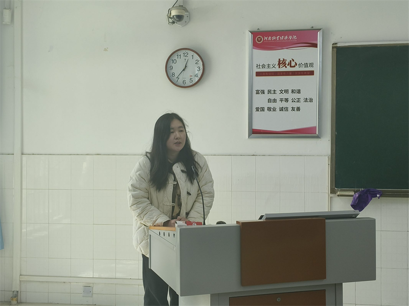 活动伊始,由办公室干事进行考勤,各部门成员点名签到。考勤结束后,由申老师和尚老师为社会实践优秀学生颁奖并合照。紧接着,卢耀彤同学作为社会实践优秀个人代表上台发言,在发言时,她指出社会实践对于大学生的重要性,呼吁大学生投入到社会实践中,为人民服务。随后,尚津老师作总结发言,尚老师提出要将书本知识与社会实践相结合,用脚步丈量祖国的大地,对社会实践优秀学生表达了肯定与赞扬,并对团学会工作提出了要求。会议最后,由各部干事分别汇报上周工作总结与下周工作计划。