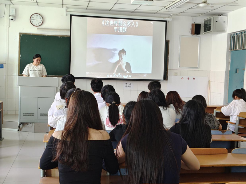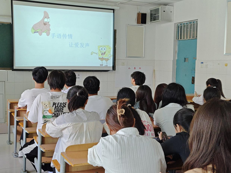 为了增进同学们对听障人士的理解和关爱,培养社会责任感和公益精神,进一步推广手语文化,激发大家对手语文化的兴趣和热爱,丰富学生的校园文化生活。太阳集团tyc234cc社实心教部于5月23日下午2:45在A504教室开展“手语传情,让爱发声”活动。