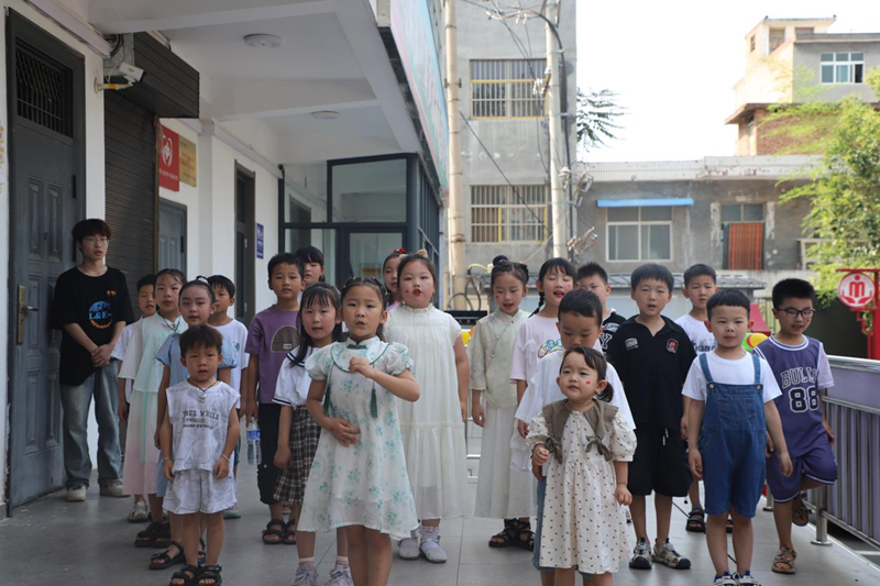 站在即将离别的十字路口,实践团队最后组织了一场精彩的文艺汇演。队员们在舞台上绽放着属于他们的青春力量和光芒。孩子们也踊跃表现,纷纷上台展示才艺,朗诵、演唱以及相声等,向实践队的哥哥姐姐们展示着他们的风采。最终,文艺汇演在欢快的氛围里结束。