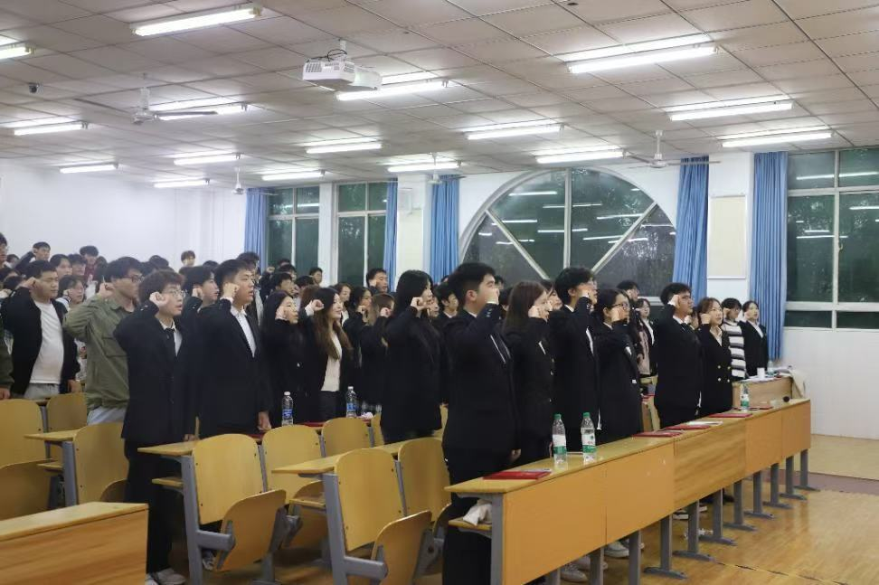 大会随后进入到第九届团学会学生干部竞聘演讲环节。首先,由与会代表通过大会选举办法,紧接着参加竞聘的团学会学生干部候选人依次上台进行竞选演讲。各位候选人分别就自身优势、对部门的认知以及对于未来工作计划等方面作了精彩的讲述。大会本着“公平、公正、公开”的原则,采用无记名投票的方式选举新一届团学会各部门负责人。最后,由第九届团学会副主席秦梦雷带领全体参会人员起立宣誓,激昂的誓词将激励全体学生干部在今后的学习、工作及生活中团结奋进,争创佳绩。本次大会在与会成员热烈的掌声中圆满结束。会后,在场领导老师和全体代表一同合影留念。