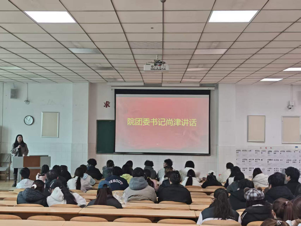 会上,尚津全面回顾并总结了2025年度学院团学工作。她充分肯定了过去一年全体学生干部在校园文化、志愿服务、学风建设等方面取得的优异成绩,对大家的辛勤付出表示感谢。结合新学期工作安排提出三点明确要求:一是全员备战校运动会,坚决守住队伍、凝聚合力。她强调,运动会是展现学院精神风貌的重要平台,全体学生干部要带头坚守训练、主动担当,带动参赛同学并肩作战。二是启动雷锋月系列活动。她号召全体学生干部率先垂范,积极投身志愿服务,让学雷锋融入日常,以实际行动传承和弘扬雷锋精神。三是平衡好学业与工作的关系。她叮嘱学生干部要牢记学生本分,合理规划时间,做到学习工作两不误、两促进,以优良学风带动工作作风,以过硬本领彰显骨干担当。