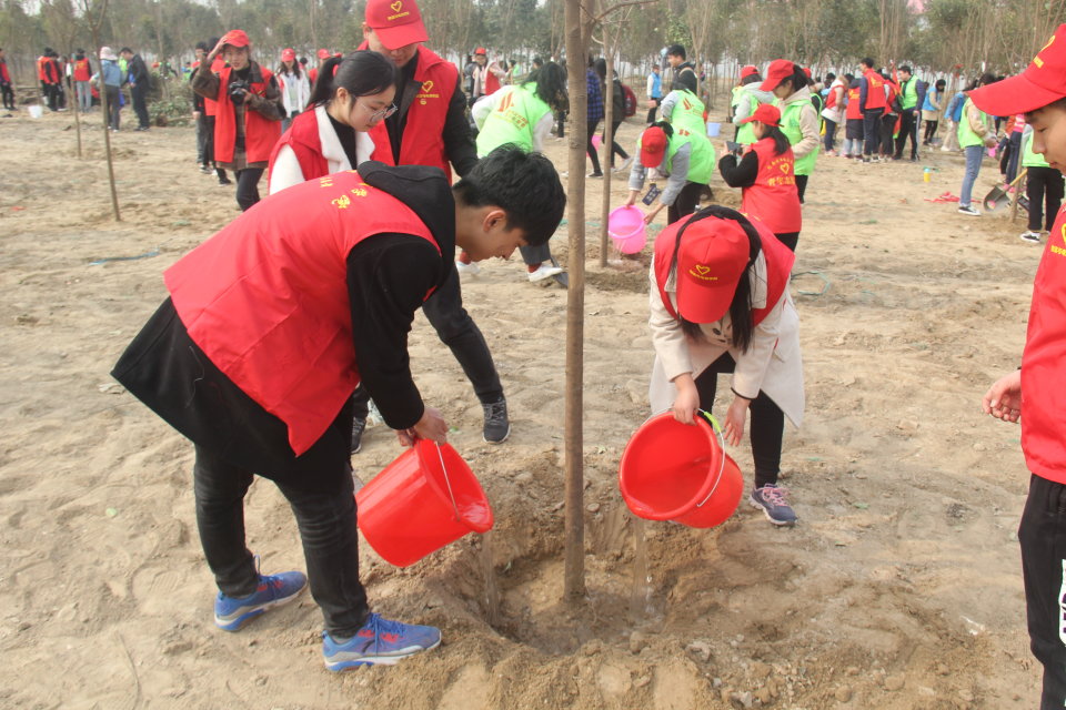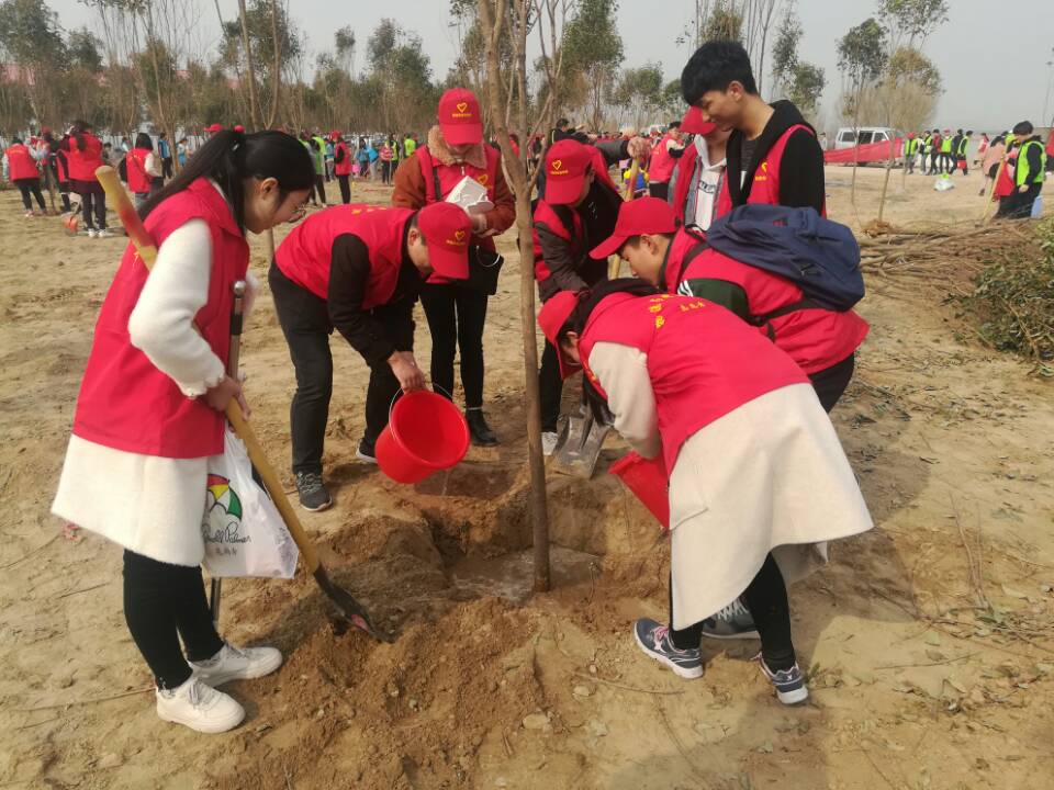 活动开始后,志愿者们有序的加入了植树的行列,手持铁锹和水桶,干劲十足,将一颗颗充满生机和希望的树苗植入土里。经过一个多小时的努力,黄河大堤边马渡下延上的树已经郁郁葱葱,大家看着那一片自己亲手种下的树苗在微风中摇曳,无不露出幸福的笑容。同时,大家也体会到照顾树苗的不易和亲自栽种树苗的快乐。值得骄傲的是,我院志愿者吃苦耐劳的精神受到了活动负责人的认可和赞扬。活动现场气氛热烈,志愿者们给自己种的树命名,为自己种的树赋予更多的意义,并集体合影留念。