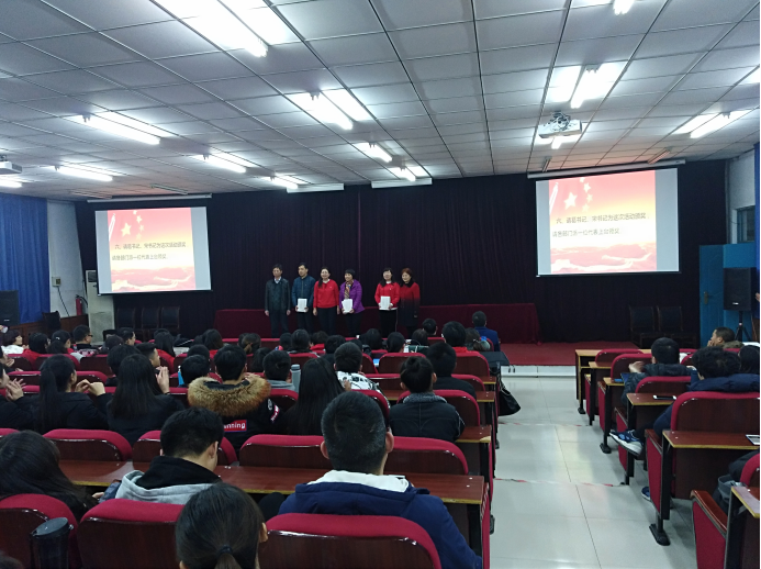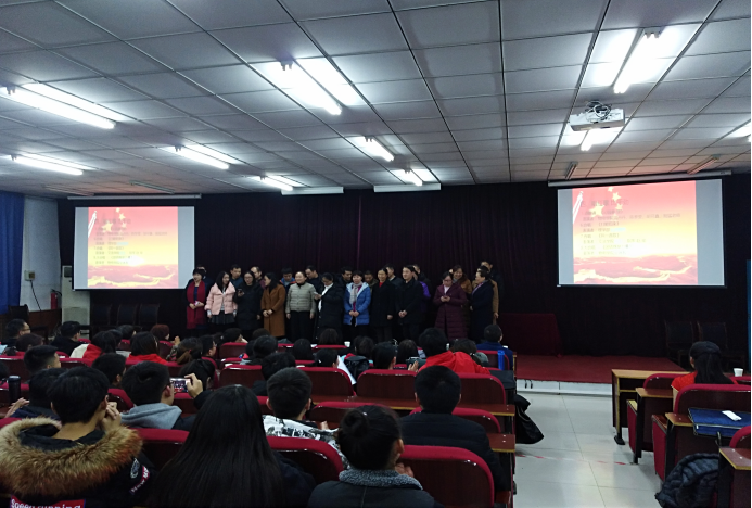 2018年12月20日14:30分,“传承红色经典 歌咏不朽华章——纪念毛泽东诞辰125周年红歌会”在英才校区E109隆重举行。此次活动由校党委宣传部主办,理学部、物电学院、文法学院承办。物电学院党总支书记宋之苓、物电学院院长曹献存、理学部主任李万军、文法学院院长李国英、文法学院党总支书记葛丽娅、理学部副主任李春、物电学院副院长李艳菊、于晓胜等领导参加了此次活动。活动由理学部副主任李春主持。
