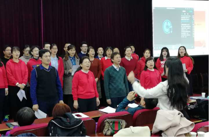 红歌会在全体与会人员的大合唱《没有共产党就没有新中国》中拉开帷幕。文法学院党总支书记葛丽娅致辞,她指出传承红色经典、开展红歌传唱活动,在高校育人工作中具有独特的价值和作用。红歌会在“唱红歌、比干劲”环节中精彩纷呈:物电学院学生合唱团的《走向复兴》演唱的气势恢宏,文法学院文星艺术团合唱队带来的《北京的金山上》、《唱支山歌给党听》真挚绵长。而理学部全体教师的《打靶归来》、文法学院师生的《同一首歌》、物电学院全体教工的《团结就是力量》不时赢得现场观众的热烈掌声。理学部副主任李春婉转悦耳的独唱《我爱你,中国》和物电学院温丹丹、陈梦莹、胡可鑫、殷猛等老师激情澎湃的诗朗诵《沁园春雪》一次次将现场气氛推向高潮。正如物电学院党总支书记宋之苓在总结讲话中所说,在毛泽东诞辰125周年来临之际,三院部师生共聚一堂传唱红歌,缅怀先烈的丰功伟绩和无私奉献精神,本身就是一次极有意义和价值的学习与交流。