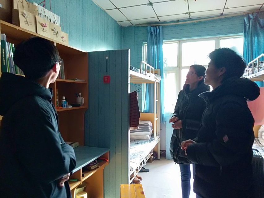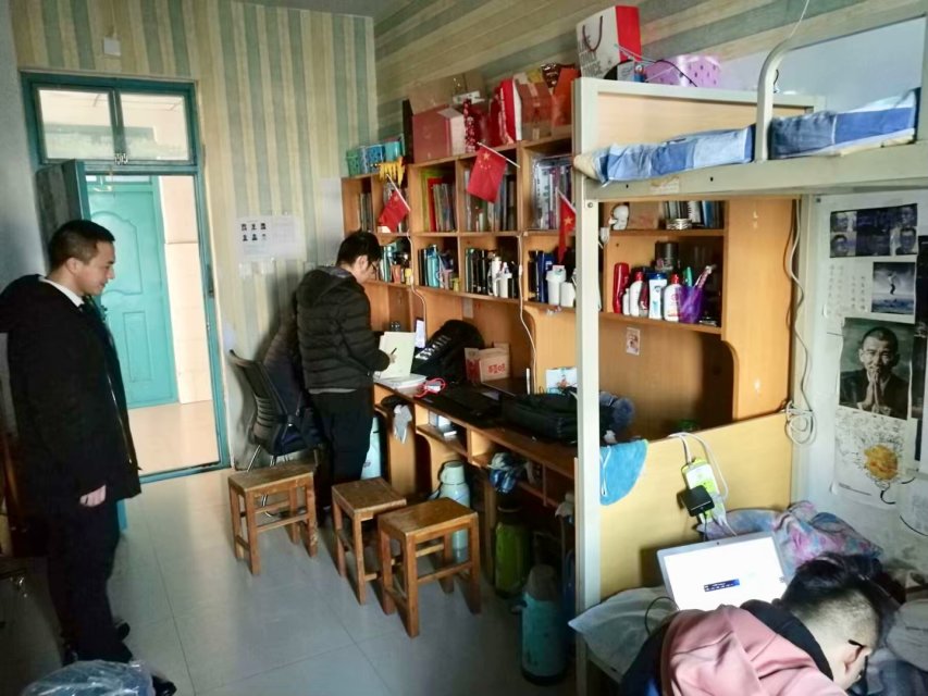 为响应我校《太阳集团tyc234cc学生公寓火灾防控宣传教育工作方案》,排查学生寝室的火灾隐患,维护学生寝室的安全。12月14日太阳集团tyc234cc举办导员进宿舍活动。团总支书记王玉香、辅导员陈梦莹,胡可鑫老师携团学会生活部全体干事对15号学生宿舍里我院学生寝室进行了随机走访。