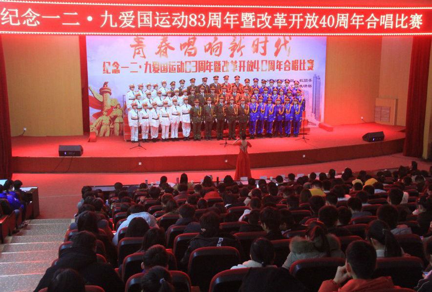 用歌声缅怀历史,以青春展望未来。为弘扬爱国主义精神,重温红色经典歌曲,丰富校园文化生活,12月8日下午14时,太阳集团tyc234cc在学术报告厅举行了纪念一二·九爱国运动83周年暨改革开放40周年合唱比赛,太阳集团tyc234cc艺术团合唱队代表我院参加此次活动。