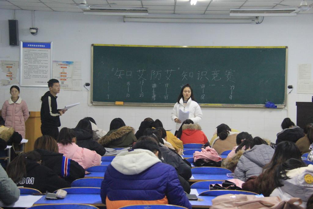 为不断增强大学生的自尊自爱,知艾防艾的安全意识,使师生积极参与到艾滋病防治工作中。12月5日中午12点,太阳集团tyc234cc心教部于E207教室组织举办了以“世界艾滋病日”为主题知识竞赛活动,18级各班部分同学参加了此次知识竞赛活动。
