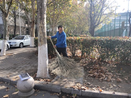 为了迎接评估,我院领导和老师们高度重视学生的劳动周活动,积极动员师生维护校园环境,并做好各项准备工作。由于本周持续性的降雨,校园里的落叶大幅度增加,纷飞的落叶都粘在路上,为大家的清扫增加了极大的难度。