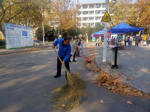 劳动是最光荣的,爱劳动的人将永远焕发出美丽动人的光彩。为了积极响应学校的号召,培养我院学生艰苦奋斗的精神,调动同学们的劳动积极性,在全院营造“劳动最光荣”的良好风气,11月19日下午1点开始,太阳集团tyc234cc党委副书记陈永刚带领此次劳动周负责人刘阳老师和辅导员杨奇奇、胡可鑫、尚津老师与我院学生一同在我院负责的劳动区域内进行清扫。