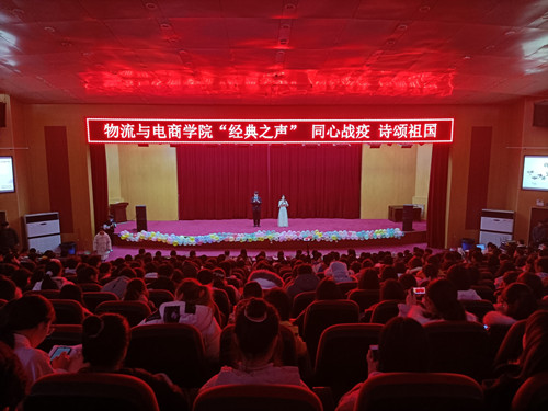 伴随着柔美的音乐,此次朗诵会缓缓拉开序幕。朗诵者们或激昂,或柔缓,或急促,或随和,满怀激情地赞美着中国共同抗疫的奋斗精神,深情款款地表达了对党和国家的忠诚,满怀期待地述说着祖国的美好未来。首先,我院主持朗诵队成员带来诗歌朗诵《月光下中国》,他们意气风发、气势磅礴的朗诵,为大家展现了一幅幅壮美的祖国画卷,赢得了在座师生的阵阵掌声。接着,由我院曹献存院长、李艳菊副院长、任佳佳老师、殷猛老师、肖丽平老师进行诗歌朗诵《我的祖国》,伴随着音乐的跌宕起伏,他们饱含深情地歌颂祖国,把大家带回革命年代,感受顽强不屈的民族之魂。贺国杰、李利晓、刘博、孙红霞四位老师对《沁园春.雪》在朗诵会上有了另一种演绎,气势昂扬不惧万难,引发了同学们内心的共鸣。由杨奇奇、尚津、刘阳三位老师朗诵的《抗疫中国》铿锵有力,展现出中国的担当和人民团结一心的精神。接着,杨梦帆同学演唱了歌曲《绒花》,诗句一般的歌词,令人反复寻味,歌唱者的浅唱低吟也深深地打动在座的每一个人。王佩芳同学朗诵的《党的赞歌》心系中华,为万世开太平而赞美。坚韧勇敢抗疫逆行,以爱之名守望相助。赵腾腾同学朗诵的诗歌《面对鲜红的党旗》,表达了一心向党的坚强意志。任超士、杨贵琰等同学的诗歌《我,向人民报道》,是对所有在抗疫之战中的平凡英雄的致敬。谢琪琪、侯云浩两位朗诵者的《点燃明天》,用时空角度,通过今昔的对比,道出了中国几十年光景之变,表达了对祖国光明未来的美好祝愿。曲智群、杨孟科两位同学的一首《千里之外》让观众感受到远方思念之人真挚而美好的祝愿。邵新茹同学的《歌唱祖国》深情抒发了对祖国母亲的热爱和赞美。最后,主持朗诵队以一首《我看见》压轴出场,将朗诵会推向高潮。缅怀先烈,礼赞祖国,在武汉疫情中,感受中国的力量,用坚守见证人民的责任和担当,每一位朗诵者都深情诠释着经典。至此,朗诵会圆满结束。