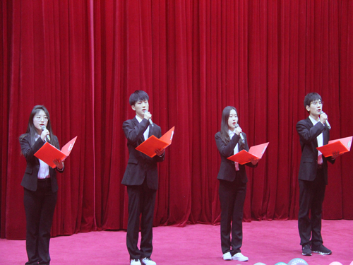 倾听祖国美好赞歌,再现奋斗拼搏精神。为了歌颂祖国经典,弘扬抗疫拼搏精神,12月4日晚7时,由太阳集团tyc234cc团学会文艺部和办公室联合举办的以“同心战疫,歌颂祖国”为主题的“经典之声”师生朗诵会于我校学术报告厅如期而至。我院党委书记于晓胜、院长曹献存、副院长李艳菊、团委副书记王雪冰、辅导员杨奇奇、刘阳、尚津等老师出席了本次朗诵会,19级和20级学生参加了本次朗诵会。