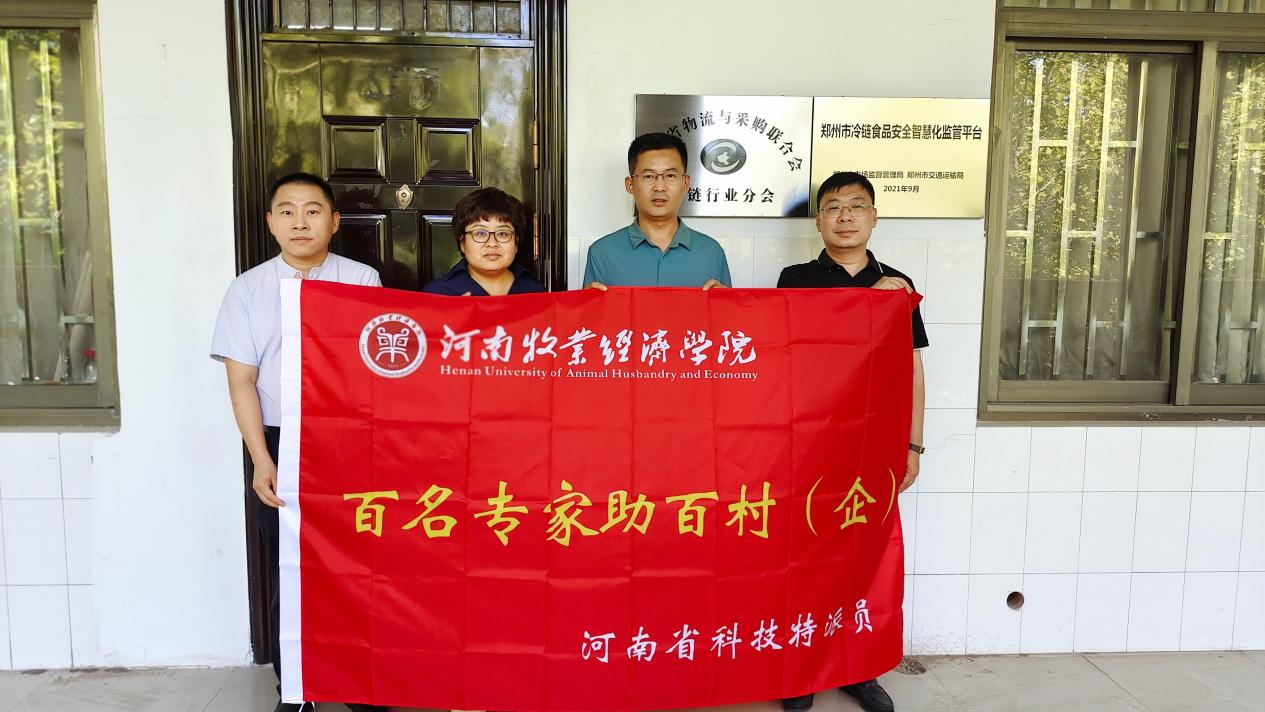 2022年6月24日下午,太阳集团tyc234cc党委书记于晓胜、物流工程教研室教师孙红霞博士、李金峰博士一行3人前往河南省物流与采购联合会冷链行业分会进行访企拓岗与科技服务,分会秘书长郭鹏全程陪同。