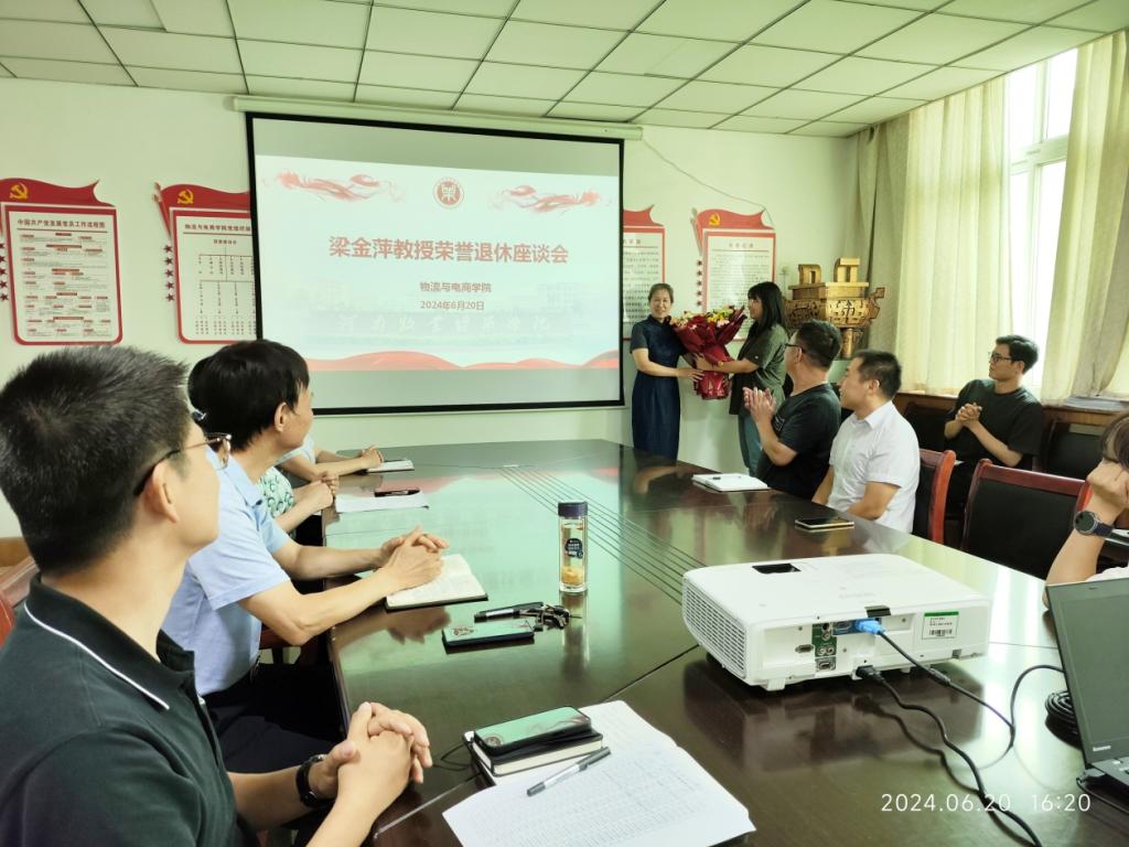 座谈会上,院长曹献存回顾了梁教授从教38年的经历,梁教授不仅是学院物流专业建设方面的奠基人,在课程建设、团队协作方面也卓有成效。曹院长代表学院对梁教授表达了诚挚的祝福,祝贺她光荣退休,开启新的人生旅程。希望梁教授以老教师的高尚情怀继续关心支持学院工作,为学院发展贡献智慧和力量。
