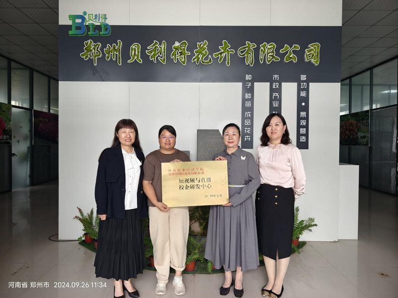 2024年9月26日,物流与电商学院党委书记田景丽、院长曹献存、副院长李艳菊、专业负责人及教师代表等分别赴河南君友数字科技有限公司、郑州贝利得花卉有限公司两家企业,举行“校企研发中心”合作协议签订和挂牌仪式,开启了校企合作的新篇章。