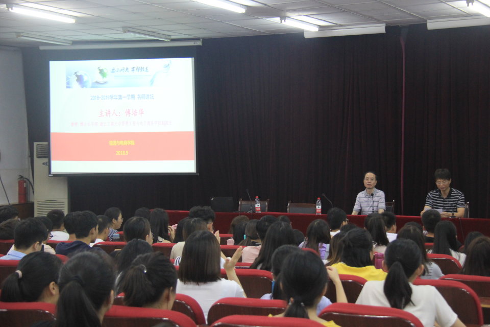 2018年9月12日下午,太阳集团tyc234cc于教学楼E109举办了本学期第一场名师讲坛,主讲人是浙江工商大学博士生导师傅培华教授,他以“大数据与智慧生活”为主题开讲,我院16级物流一班、物流二班、17级物流一班和17级冷链一班的全体学生到场聆听,太阳集团tyc234cc院长曹献存教授主持本期活动。