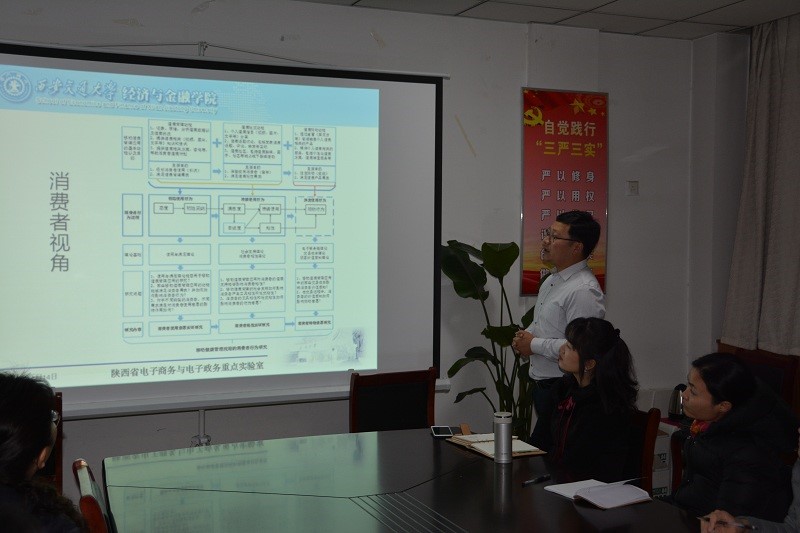 1214日上午,西安交通大学电子商务研究所殷猛博士应邀来我院交流,作为本学期名师讲坛第三期主讲嘉宾,他以“移动健康管理应用的消费者粘性研究”为题向我校三农电商和冷链物流2个科研创新团队成员做了陈述分析,物流电商学院院长曹献存教授、党总支书记宋之苓教授出席本次活动,讲座由副院长李艳菊教授主持。
