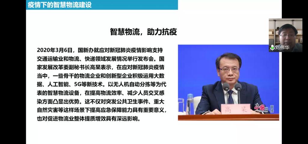 近2个小时的线上交流,加深了我院师生对智慧物流内容的了解,见识了更多的物流新技术和新手段,这为我院相关专业学生今后的学习方向提供了有力的帮助。相信在师生的共同努力下,我院师生今后在专业道路上将取得更好的成绩。