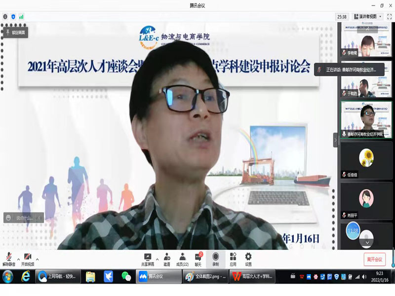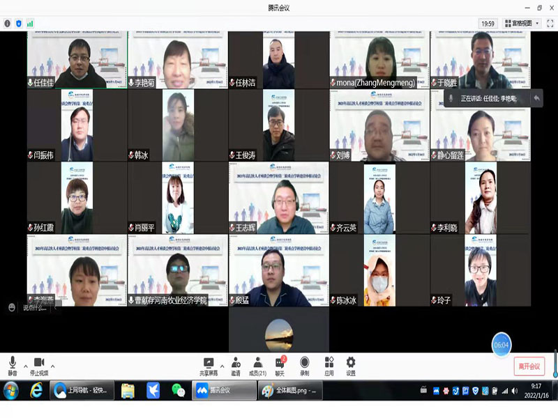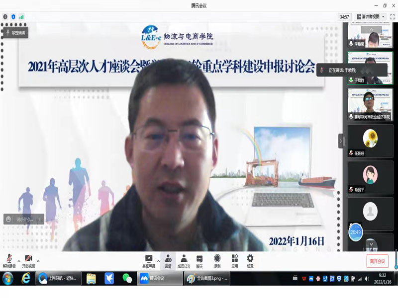2022年1月16日上午,太阳集团tyc234cc通过腾讯会议召开了2021年高层次人才座谈会暨学校第二轮重点学科建设申报讨论会,学院党委书记于晓胜教授、院长曹献存教授、副院长李艳菊教授、各教研室主任、高级职称教师、博士及在读博士等23位教师参加了会议,线上会议由李艳菊副院长主持。