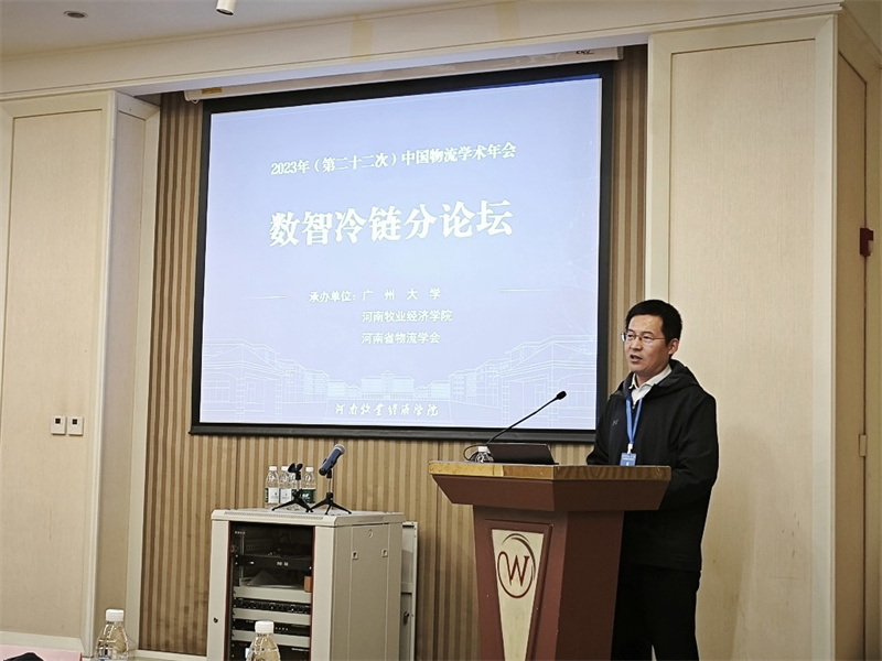 我校与河南省物流学会、广州大学联合承办了“数智冷链”专题分论坛。于晓胜书记主持“数智冷链”专题分论坛,并做了题为“数字追溯视角下农产品冷链物流数智化改造的理论逻辑与复杂网络博弈”主题演讲。