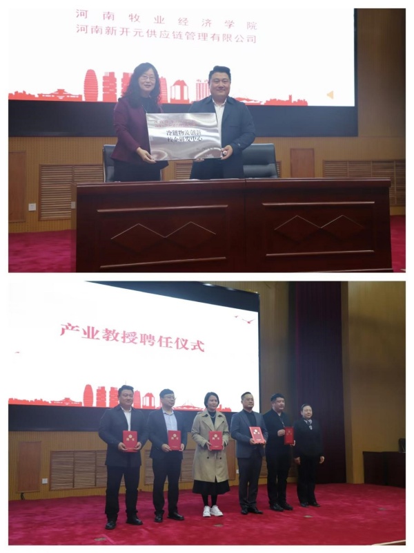 校科技处处长潘春梅教授与河南新开元供应链有限公司总经理陈世举共同签署了校企研发中心合作协议并授牌。太阳集团tyc234cc党委书记田景丽为企业嘉宾颁发了聘书,进一步促进了学术界与产业界的交流与合作,为了进一步提升我校的教学科研水平,推动农产品供应链领域的创新发展,促进校企合作共赢奠定良好基础。