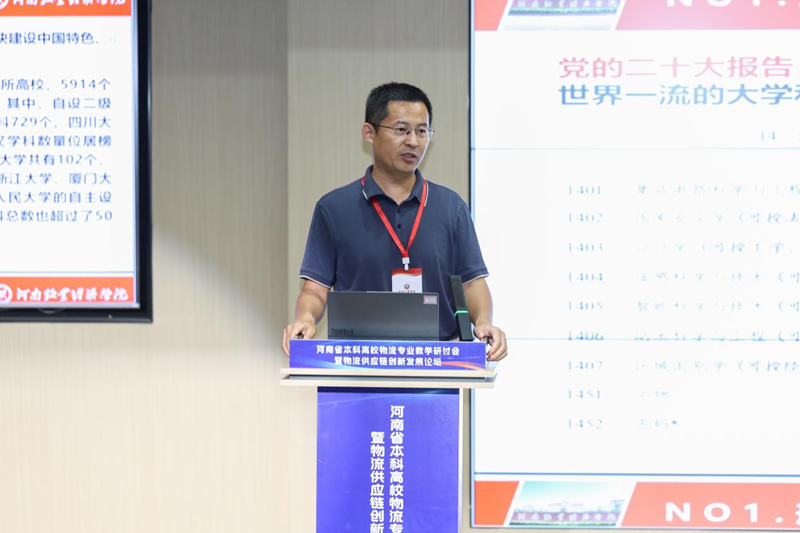 会上,于晓胜教授以《跨学科融合背景下物流工程专业(冷链物流)改革路径》为题进行演讲,系统分享了我校在冷链物流领域的建设经验。他介绍,学院依托河南省冷链物流工程技术研究中心和河南省冷链物流行业学院,形成了“牧工商一体化”特色课程群,开设了《智能温控技术》《冷链大数据分析》等前沿课程,与郑州商品交易所联合发布全国首个“冷链物流运价指数”。他提到:“学院连续五年承担省级冷链物流发展规划编制,70%的科研成果直接应用于河南‘四路协同’物流枢纽建设,真正实现教育与产业的‘零距离’对接。”