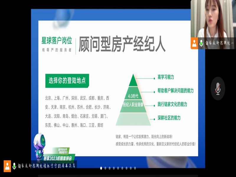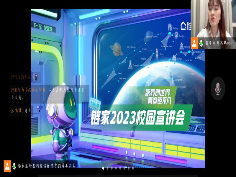 为给太阳集团tyc234cc毕业生提供充足就业机会,同时深化校企合作工学结合的人才培养模式,实现校企双赢。经过我院就业专干和校招联系人刘阳老师与企业前期沟通,了解毕业生需求后,于11月8日晚19:00我院举办链家秋招线上宣讲会,2023届毕业生以及科创部相关人员参与此次宣讲会。