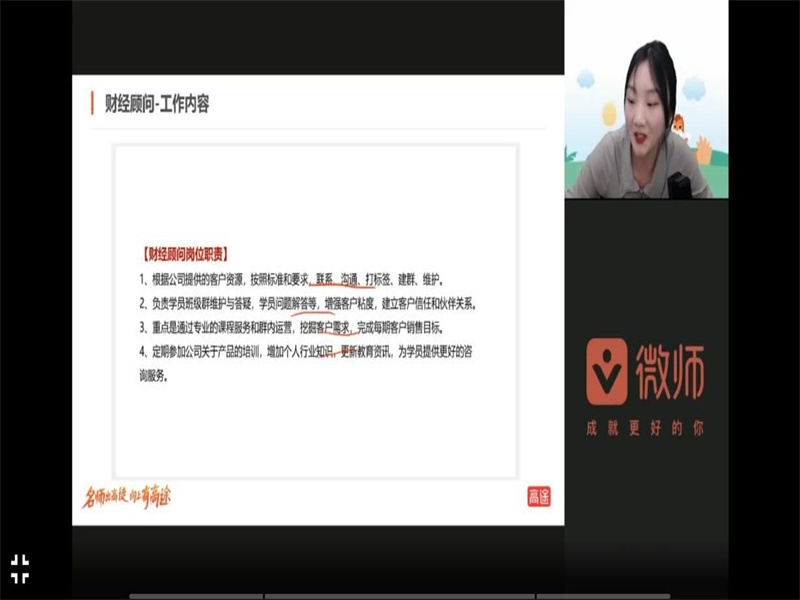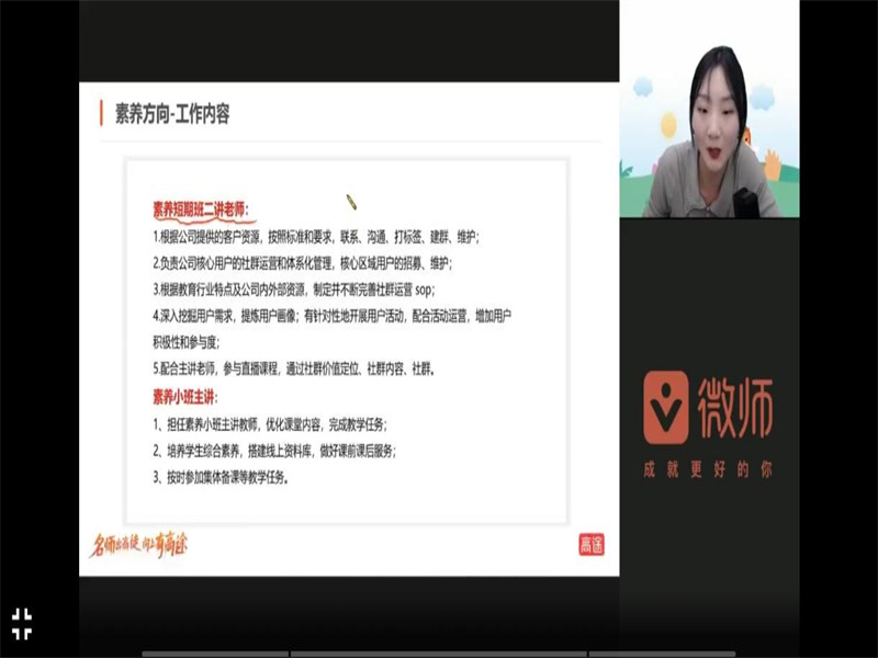 为给太阳集团tyc234cc毕业生提供充足见习机会,同时深化校企合作工学结合的人才培养模式,实现校企双赢。经过我院就业专干和校招联系人夏静老师与企业前期沟通,了解毕业生需求后,我院于2月16日下午14:00举办高途线上宣讲会,2023届毕业生以及科创部相关人员参与此次宣讲会。