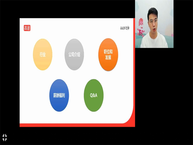 宣讲会上,首先由主讲人张庆波向我们介绍公司的基本概况、发展方向以及人才需求。随后张老师向毕业生表示现在终身学习已经成为时代趋势,社会对教师资源的需求越来越大,教育行业将迎来快速发展。高途集团紧抓时机,推出特色教学模式,以面向未来的全新学习方式和学习理念,为用户带来智慧化、高效率、强互动的在线学习体验,致力于打造成人终身学习的“充电站”。张老师提到,此次招聘对象主要为学习顾问类、教学教研类、运营类、产研类以及设计类等五种工作岗位,工作地点在郑州、北京、太原、武汉、成都、上海等六个城市,涉及广泛,为毕业生提供了更丰富的选择。最后,张老师向毕业生们介绍了大家最关心的问题——此次招聘实习员工的福利待遇以及岗位的任职要求、工作与休息的时间等问题,同时一一详细回答了同学们的疑惑与不解,并希望同学们都找到自己心仪的工作。