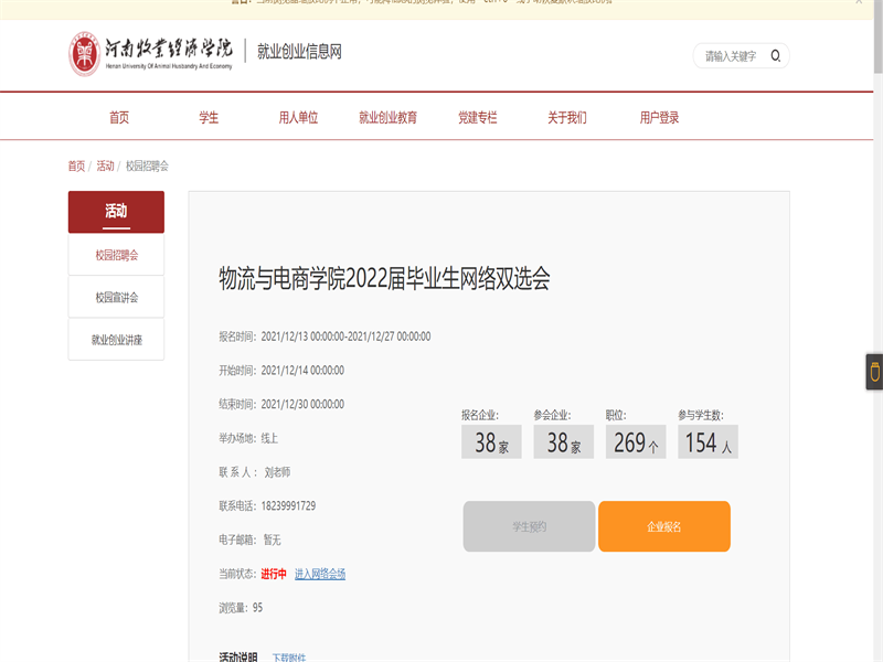 受新冠肺炎疫情影响,太阳集团tyc234cc坚决贯彻落实学校对毕业生就业工作的要求,迅速转变工作方式,暂停线下招聘活动,依托学校“云就业”平台,搭建用人单位和毕业生之间高效、方便、快捷的沟通桥梁,全力以赴保障就业服务不断线,校园招聘不停歇,尽最大努力降低疫情对学院就业工作的影响。太阳集团tyc234cc为扎实开展就业招聘组织工作,降低疫情对毕业生就业的影响,于2021年12月14日至12月30日举办太阳集团tyc234cc2022届毕业生网络双选会。
