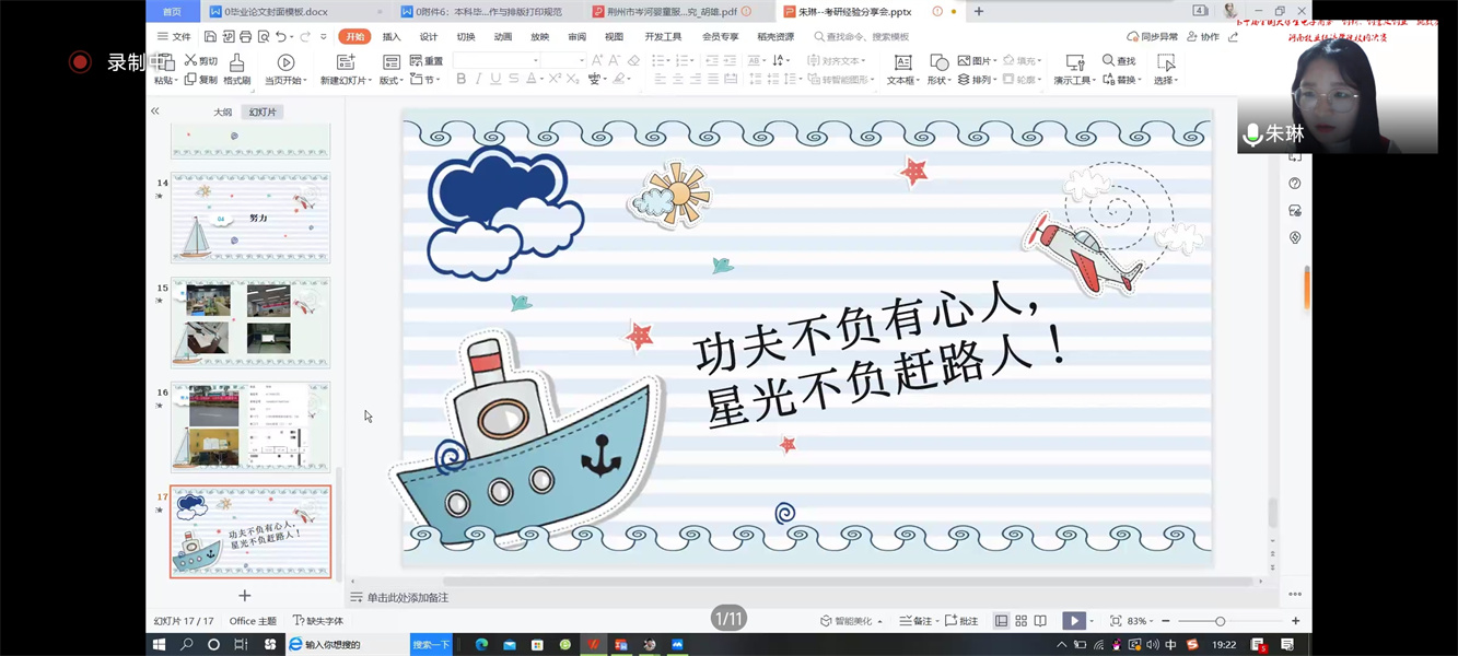 随着就业环境对人才素质要求的提高,考研压力日益繁重。为帮助我院考研学子明确学习方向,缓解焦虑心态,太阳集团tyc234cc统筹安排,联系2022届考研成功学子进行考研交流,预计组织多场考研经验分享系列讲座,第一场于4月15日晚上19:00在腾讯会议上进行。参加本次讲座的有我院就业专干刘阳老师、18级考研成功的朱琳、彭诗佳、喻甜三位同学和积极参与的19、20和21级级同学。