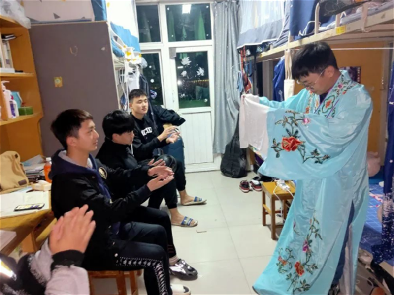 起初,活动范围的受限让许多同学难以适应,但这绝对难不倒创意无限的同学们,更是封不住大家的心。为了使宿舍的网课生活更加充满趣味,于是以寝室为单位的同学们纷纷打卡每日生活,一起“内卷”。高校拳王比赛、宿舍舞蹈秀、比赛举哑铃的时长、宿舍梨园春等,同学们用自己的创意开展了丰富多彩的宿舍活动,充分展现了个人特长,让抗疫生活有了别样的色彩。