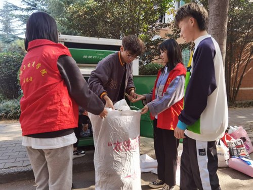 本次活动的主要内容是对我院衣往情深爱心捐物箱内的物品进行整理和装袋,推进“衣往情深”活动继续开展。活动期间,参与人员积极热情,有序行动。志愿者们分组分工,配合默契。首先有一组志愿者将捐物箱内的爱心捐物整理出来,进行打包、装袋,随后另一组志愿者用扫把将捐物箱外部灰尘清理干净,再用抹布将捐物箱内外擦拭干净,让爱心捐物箱焕然一新,既美化了校园环境,也为今后“衣往情深”活动的开展做好准备。